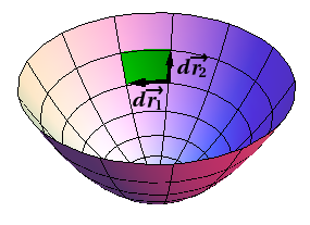 There is however a significant difference between these two approaches: Drawing the curves on the paraboloid with \(s\) or \(\phi\) held constant is easy; drawing the curves with \(x\) or \(y\) held constant is not. Try it! The rectangular coordinate approach relies for its geometric intuition on the generic figure found in most textbooks which maps the rectangular “parameter space” into the surface, whereas the cylindrical coordinate approach starts by choosing the geometrically obvious curves in the given surface.