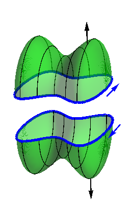 for any vector field \(\FF\text{.}\) Consider a closed surface. Cut it in half along some closed curve, as shown in the first diagram in Figure 11.17.2. Then each piece of the surface is a butterfly net with the same rim, as shown in the second diagram in Figure 11.17.2 (with the pieces separated for clarity). Applying Stokes’ Theorem to each piece leads to the conclusion that the flux of the curl of \(\FF\)upward through each piece must be the same, so that the flux up through the top cancels the flux downward through the bottom. This cancellation forces the flux of the curl of \(\FF\)outward through the entire surface to vanish. Using the Divergence Theorem, we get
