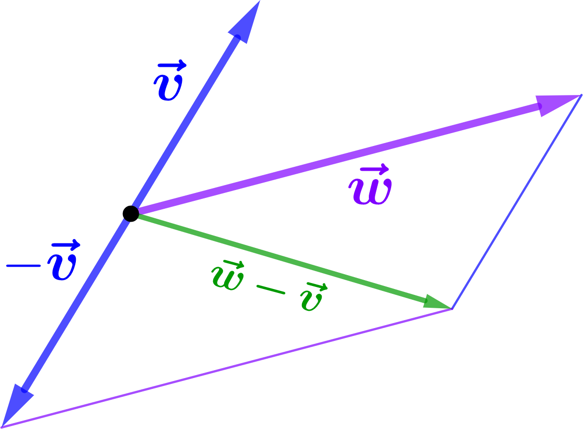 which could also have been taken as the definition of \(-\ww\text{.}\) Thus, we can also subtract vectors, as shown in Figure 1.3.3.